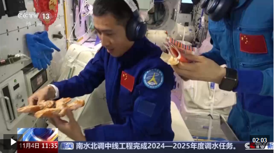 神舟二十一号和神舟二十号宇航员在轨道上安全团聚。为了庆祝中国空间站第七次太空相遇,六名宇航员在空间站上准备了一场烧烤,他们使用了刚刚带到太空的新设备:热风烤架。